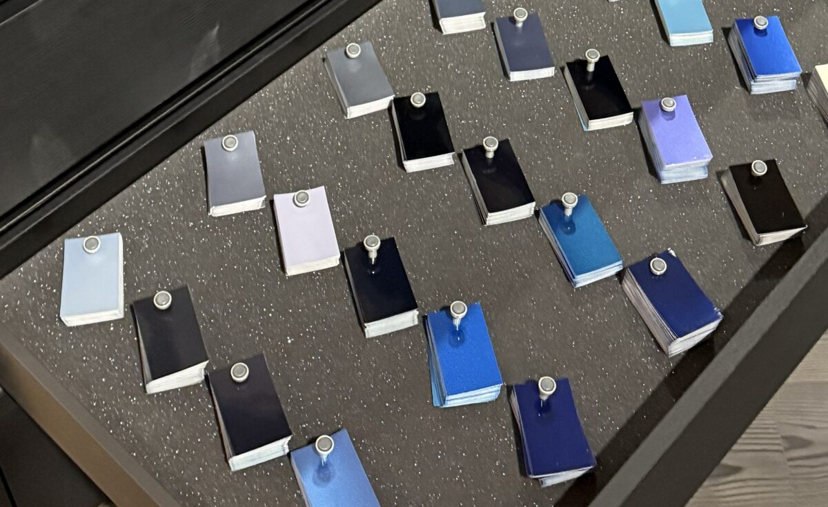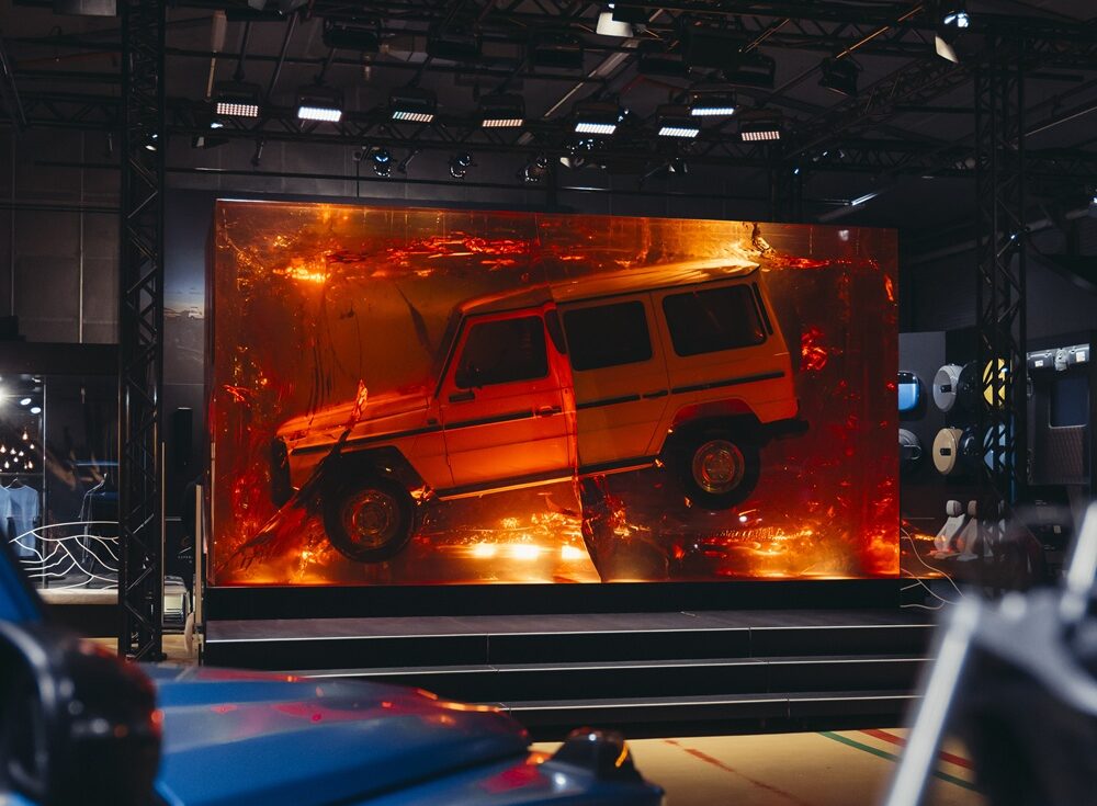 Her er også displays med de mange tilpasninger, kunder kan lave, når de bestiller en G-Klasse. Heriblandt er et udvalg af over 20.000 farver.
