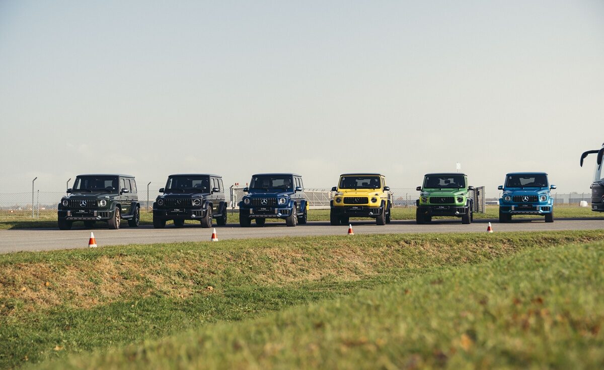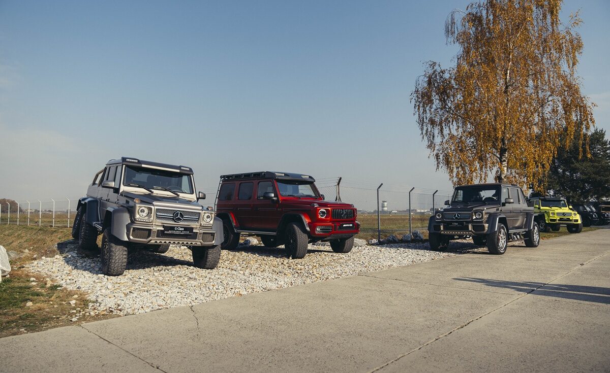 Graz er hjemby for G-Klasse-produktion og oplevelsescenter, hvor kunder og andre interesserede – herunder heldige motorjournalister – kan se og prøve et lineup af G-klasser. Her står vitterligt G-klasser i alle mulige udgaver – også 6×6.