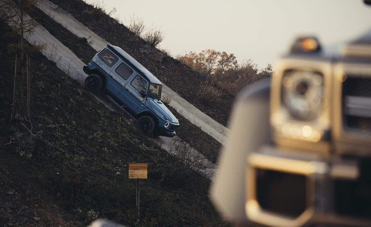 Efter besøget på fabrikken går turen tilbage til Experience Center. Her er et over 100.000 m² stort offroad-paradis på et tidligere militæranlæg, hvor du kan opleve, hvad en G virkelig kan. Det virker som et naturligt habitat for bilen.