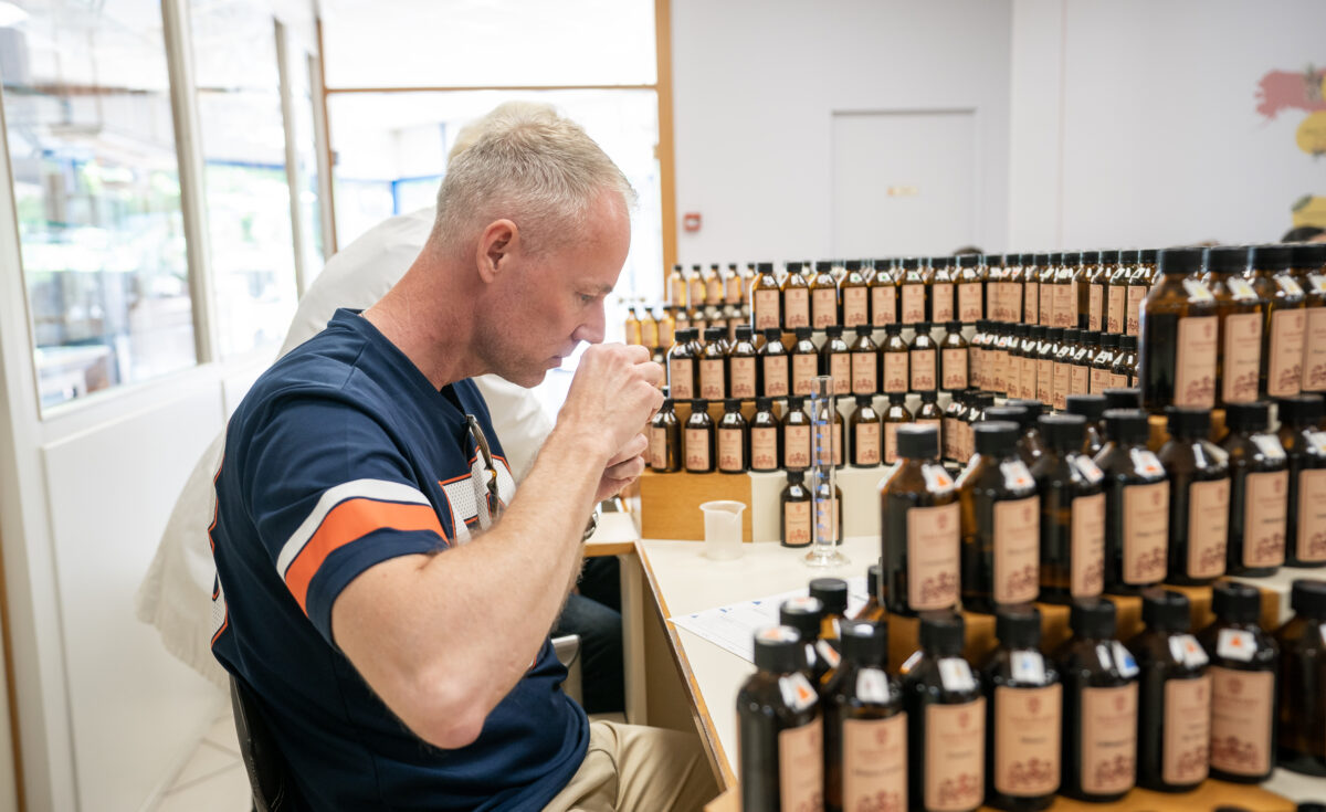 Det er første gang, jeg prøver at lave en parfume. Vi får kyndig vejledning af en parfumedame, der kan sit kram. Først er jeg lidt skeptisk – men jeg ender med at gå all in og får lavet en duft, som jeg rent faktisk synes er god.