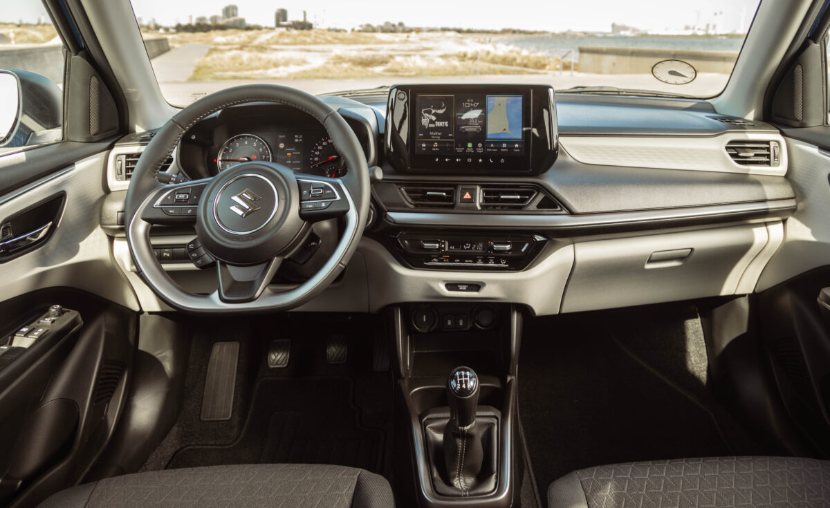 Designet lugter stadig af Swift. Det er opdateret med 2024-kendetegn som pianolak i kølergrillen og LED lys formet på en måde, så bilen får sin helt egen karakter.