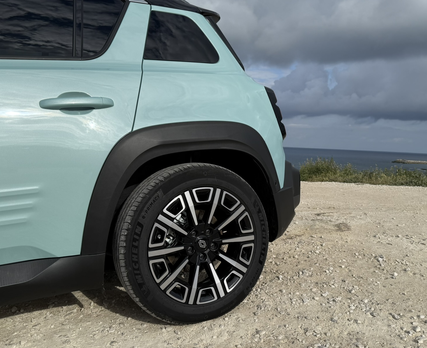 Basismodellen står på stålfælge med kapsler, og det passer på en måde ekstremt godt til hele bilens væsen – i hvert fald hvis vi tænker på den oprindelige lidt simple Renault 4. Det er lige før de flotte letmetalfælge på topmodellerne bliver for flashy til Renault 4.