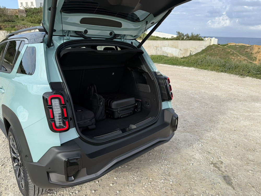Bagagerummet er med 420 liter pænt stort for klassen. Der er ingen frunk under fronthjelmen, men der er opbevaringsrum i bagagerummet under gulvet til ladekabel samt praktiske kroge og elastikker til fastsurring af baguette og rødvin.