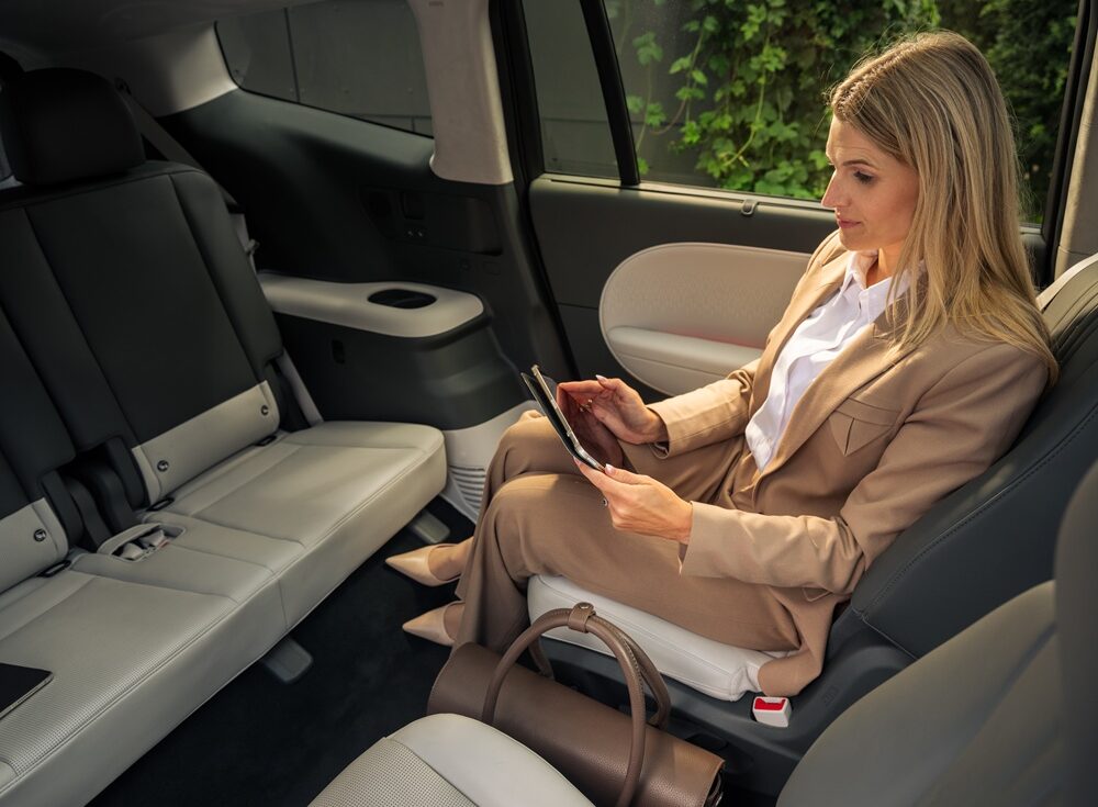 Vælger man den luksuriøse seks-sæders version, får man drejbare lounge-stole på anden række — perfekt, hvis ungerne skal sidde og hygge sig ansigt til ansigt, mens man venter på opladningen.