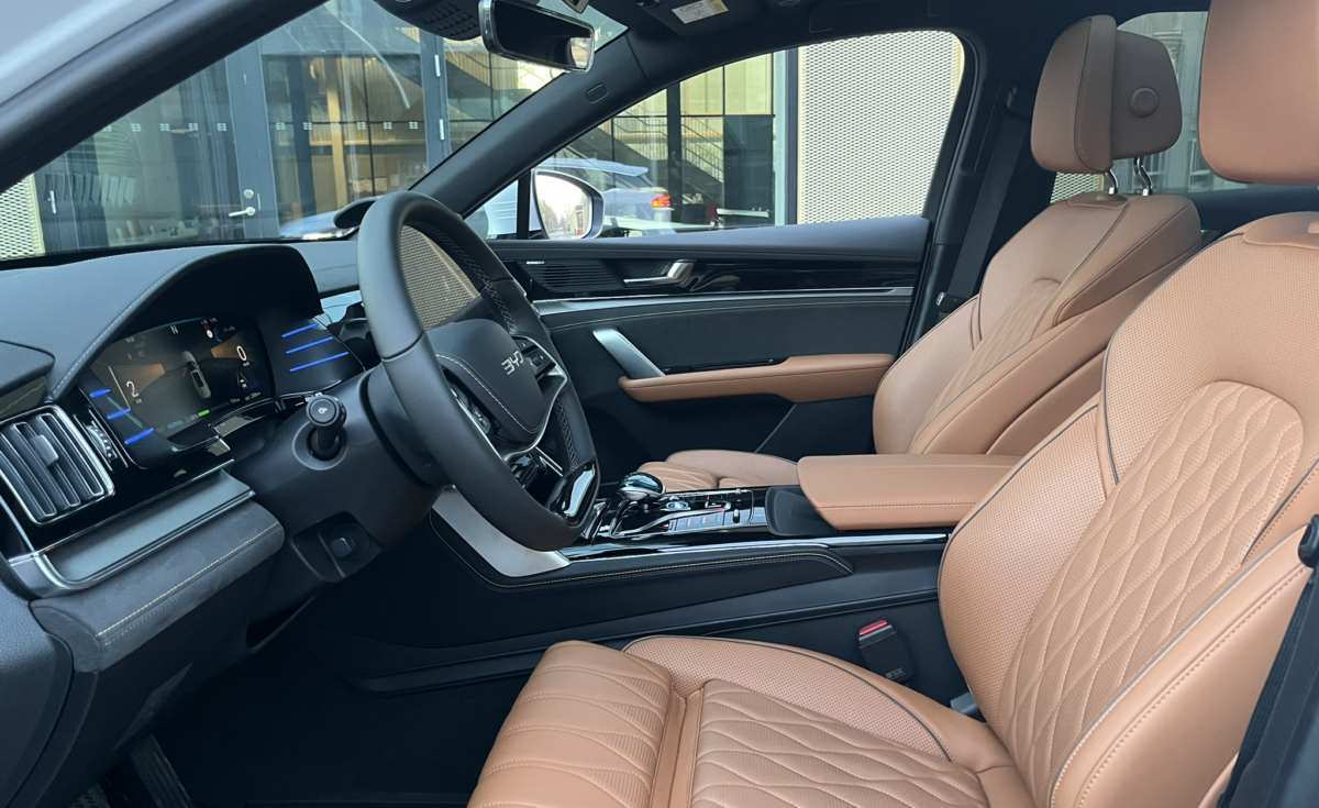 Størrelsen på BYD Tang får en Audi Q4 e-tron til at virke lille. Man stiger op i bilen og har et glimrende udsyn.