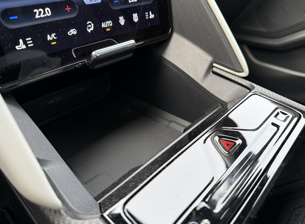 I et andet rum mellem forsæderne er der masser af plads (17 liter) og en rumdeler, der kan bruges som isskraber.