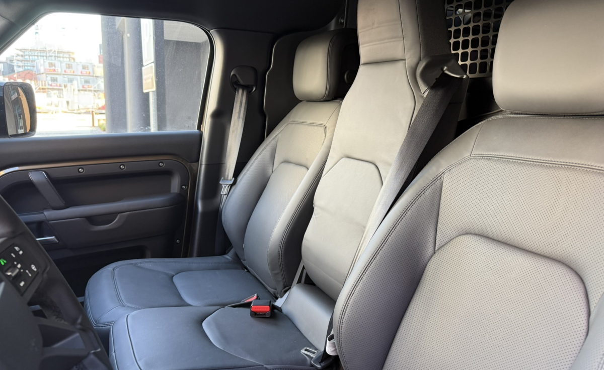 - Færre sæder: Ofte kun plads til 2 personer (chauffør + passager) – med mindre man vælger et ekstra sæde som i Defender Hard Top. Det 3. midtersæde foran koster 6.800 kr.