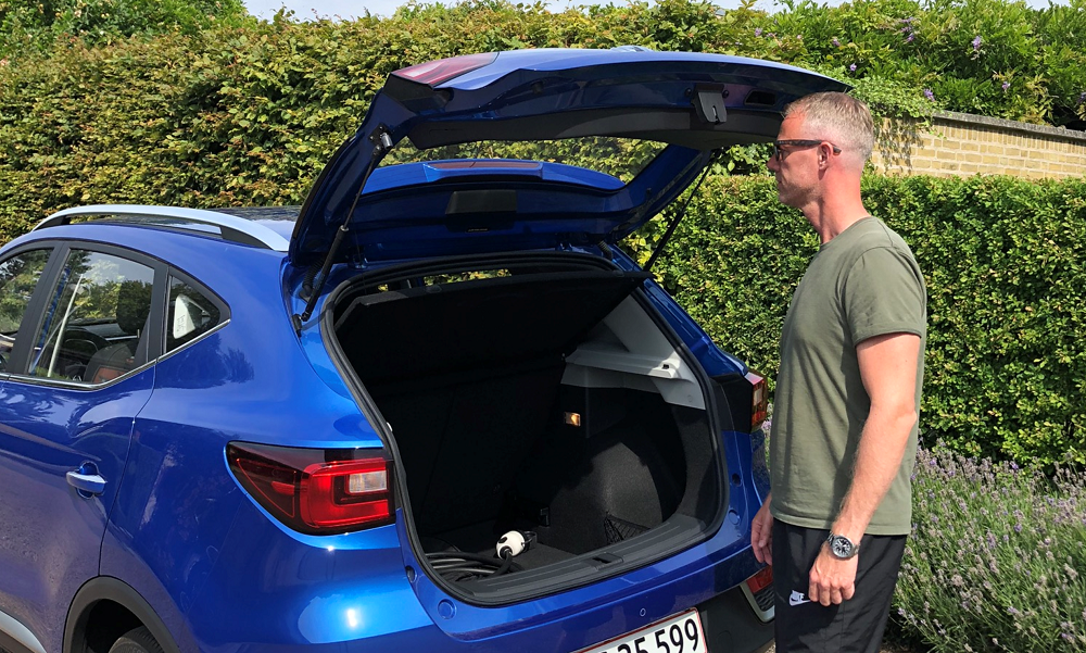 Er du over 1 meter og 80 vil du med garanti knalde hovedet ind i bagklappen, når du skal have ting ind og ud. Med mine 187 cm stoppede jeg på et tidspunkt med at tælle, hvor mange gange jeg fik hovedpine af MG ZS EV. Så rådet er, at du må få personer under 1 meter og 80 til at stå for bagagen. Så kan du bruge ventetiden på at hente det kabel, som du skal bruge til at connecte din smartphone til bilen. Trådløs forbindelse har den ikke. Og trådløs opladning kan du også glemme. - Aircondition er bare træls – hit med et klimaanlæg
