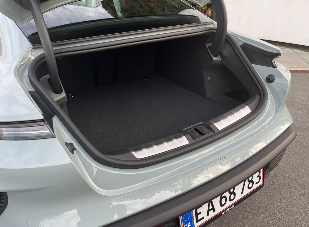 Taycan er en sportsvogn med brugbart bagsæde og et hæderligt bagagerum på 366 liter + 84 liter foran, så den kan mere end det vanedannende adrenalinsus.