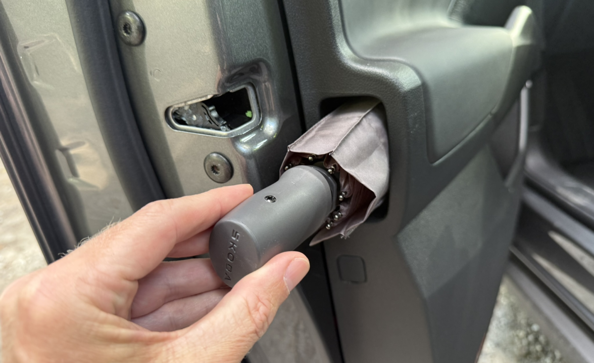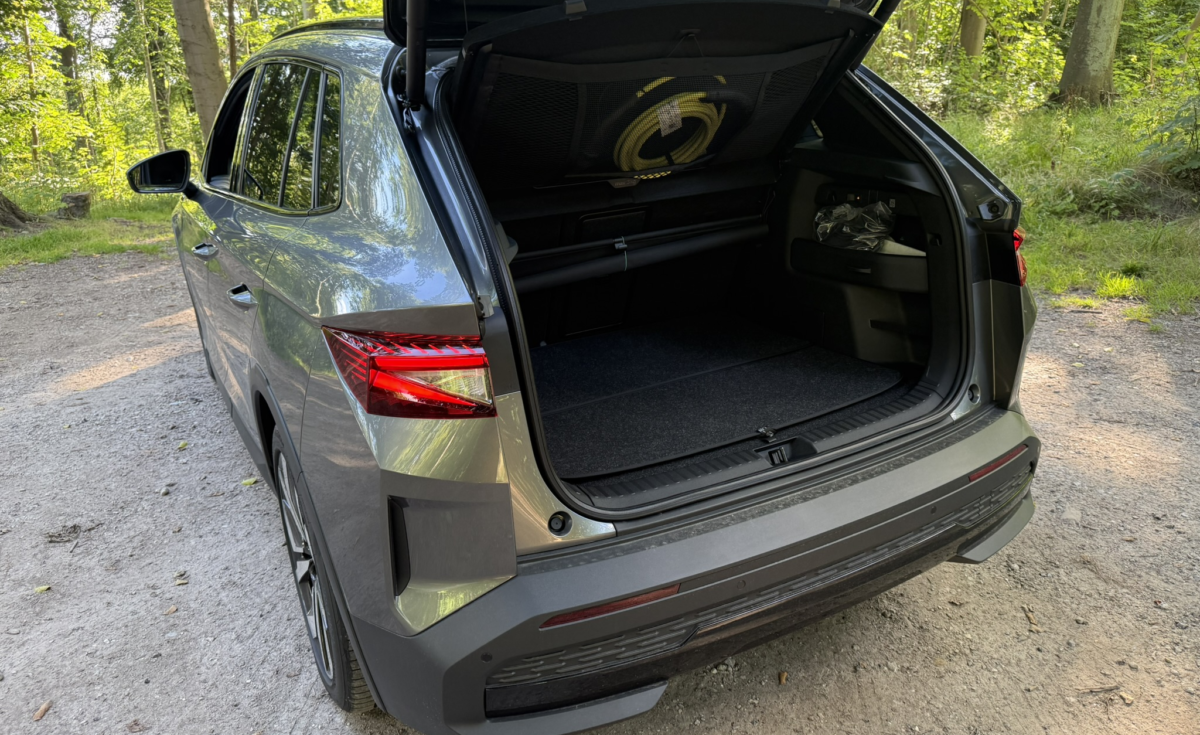 Det her er en ægte Škoda – og det ses i detaljerne. Paraplyen i døren er bibeholdt som feature. Nettet under bagagerumsdækkenet til ladekablet er en lille genistreg – og faktisk en feature vi har set før i fx Kamiq.