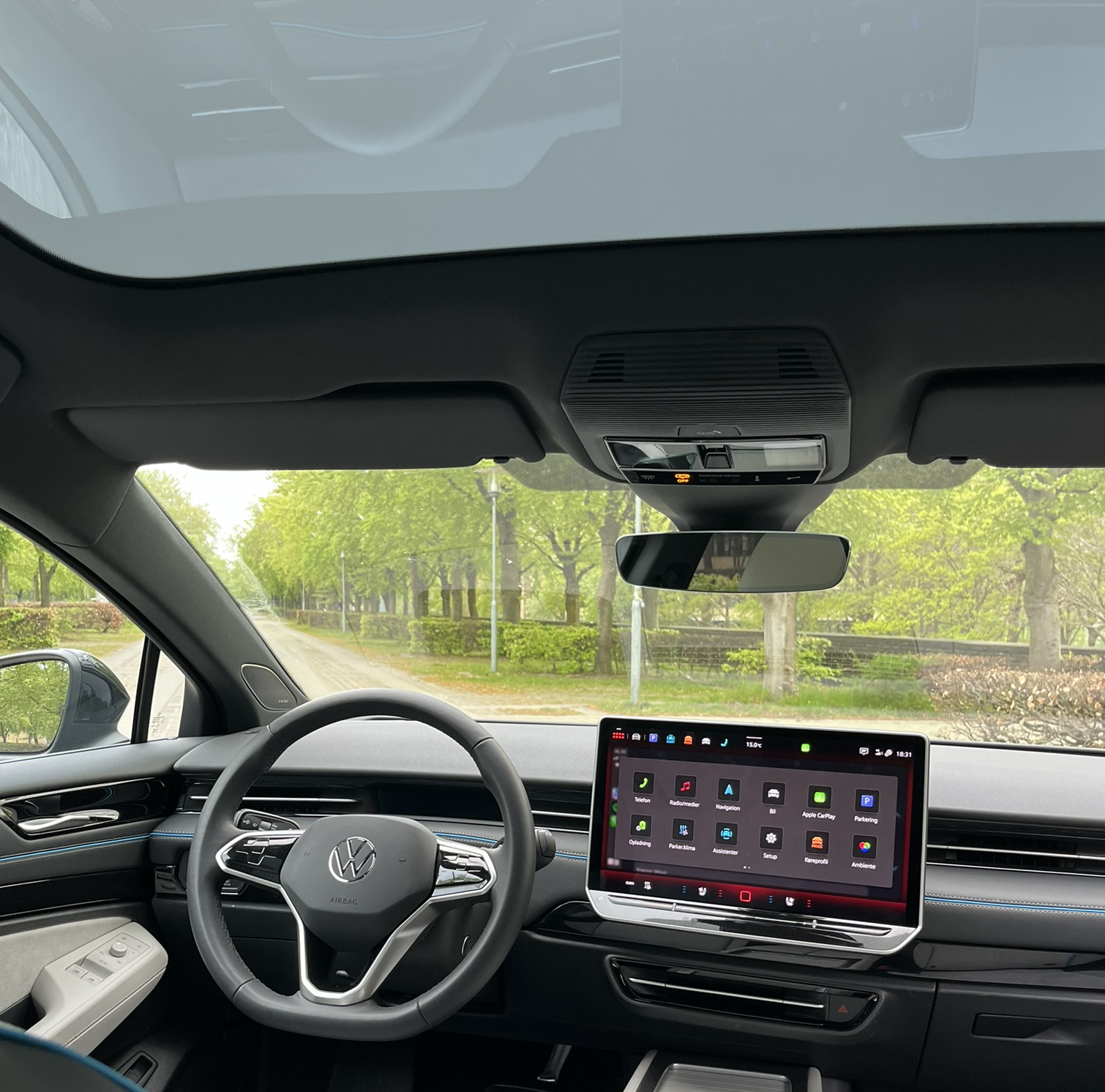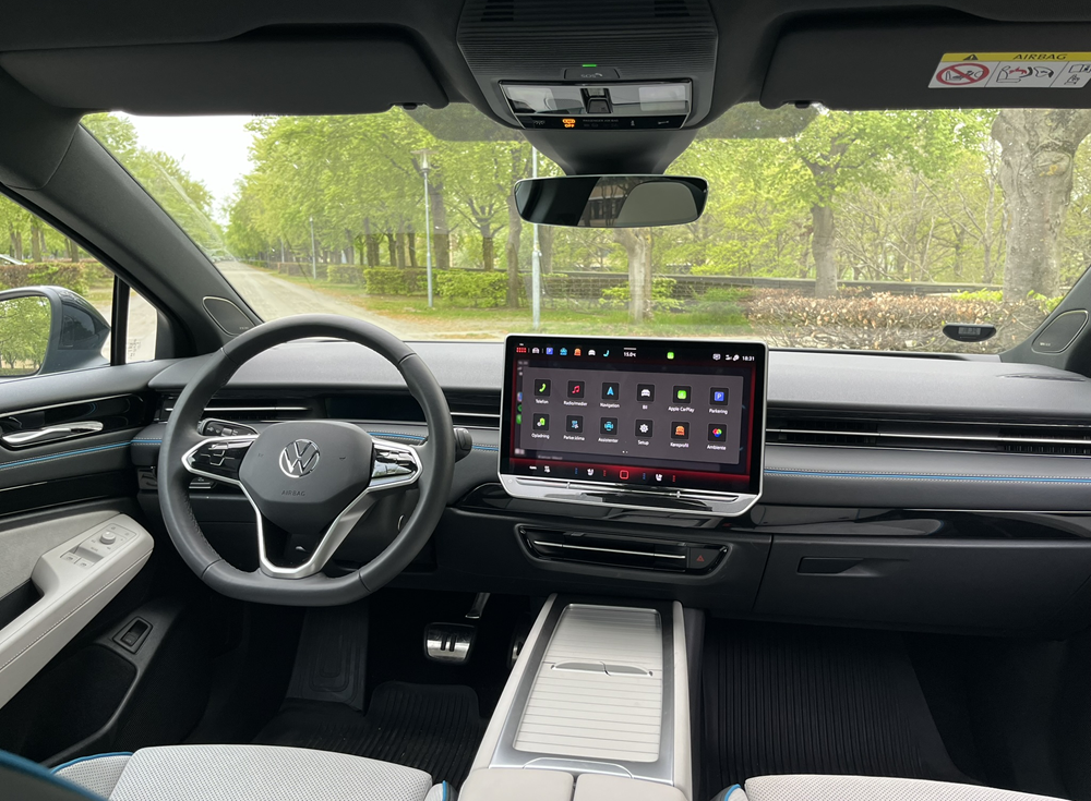 Et andet punkt, hvor ID.7 løfter barren, er på de digitale indslag. Der er et integreret digitalt cockpit foran føreren, AR-head-up-display og et nyt intuitivt infotainmentsystem med 15” touchskærm, hvor softwaren arbejder hurtigt og præcist.